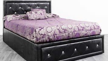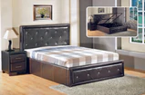 Modern Style Lift Up Storage Black Faux Leather Bed in single/double/king-sized bed. Strong Metal frame stylish Alice Bed in Black, Grey, and White.