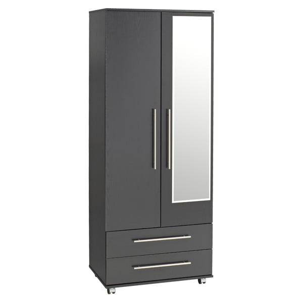 This Bobby Two Doors Two Draws Combi wardrobe is amazing value for money and these prices will be very hard to beat. Made from High Quality chipboard and comes in a variety of colours. A Comtemperoray Edition for the Bedroom. Mirrors can also be added. Metal hanging rail and shelfs inside. All Drawers are Metal Runner.