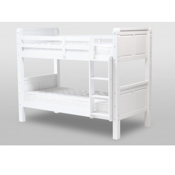 This classic pine bunk bed will make an undeniably charming addition to any child’s bedroom. With its chunky wooden construction and Satin White Painted Finsh, the Corona Pine Bunk Bed has an enchanting presence that will enhance any bedroom. Safety rails guard against nighttime tumbles while a sturdy ladder provides easy access to the upper bunk.