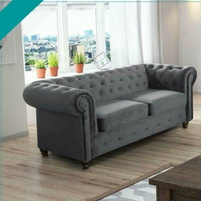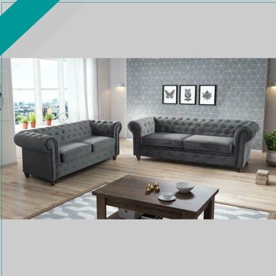 This Chesterfield sofa set makes a sophisticated addition to any living space. The sofa is upholstered in fabric which is soft to the touch and hard-wearing. With a foam-filled back and seats, this Chesterfield sofa is both comfortable and supportive.