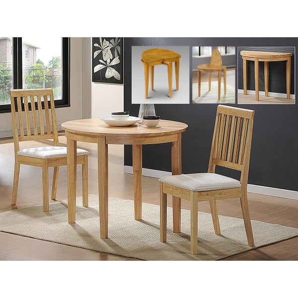 Dinnite Contemporary dining table with 2 High back upholstered chairs in Natural Pine, Durable and competitively priced dining table and chairs solid wood Round table.