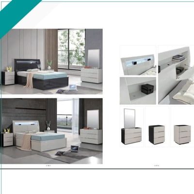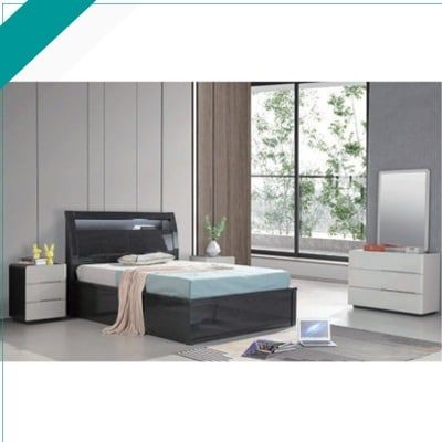 RUGBY GLOSSY BLACK AND WHITE BEDROOM SET:-