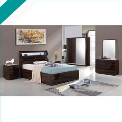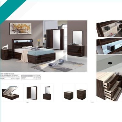 RUGBY GLOSSY WALNUT BEDROOM SET:-